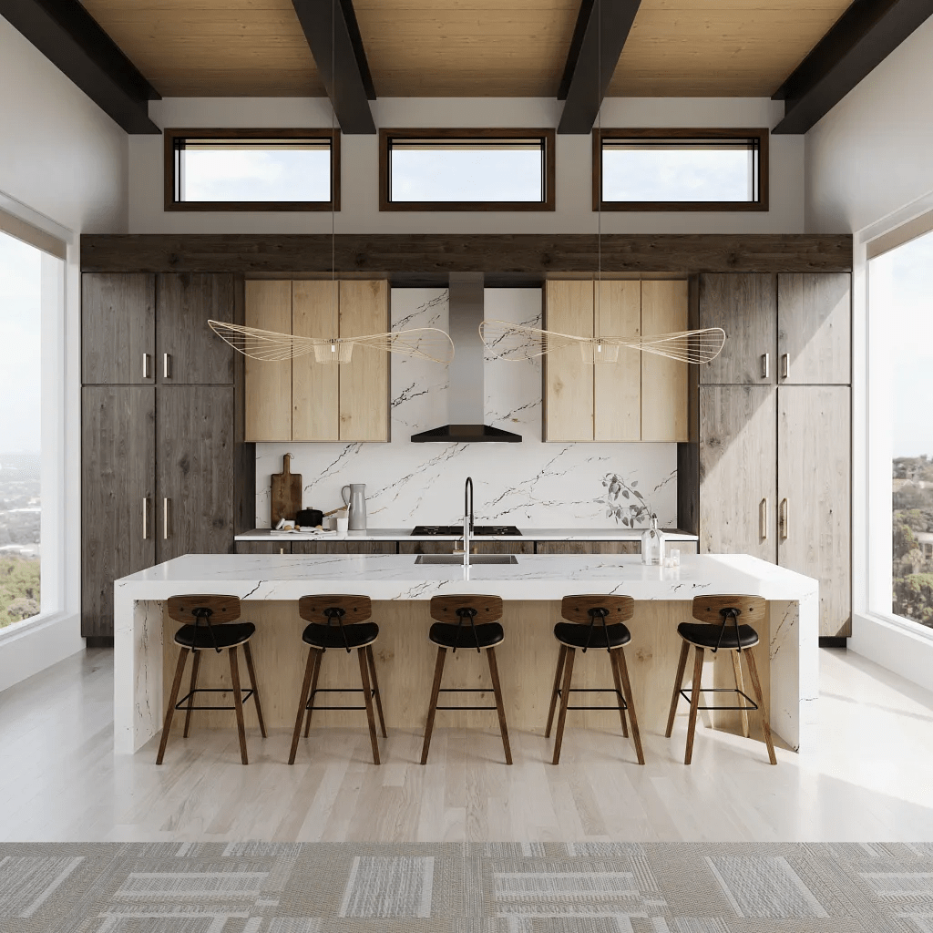 Quartz is as practical as it is sophisticated. Concrete needs time to cure; it cracks over the years and generally requires more maintenance.